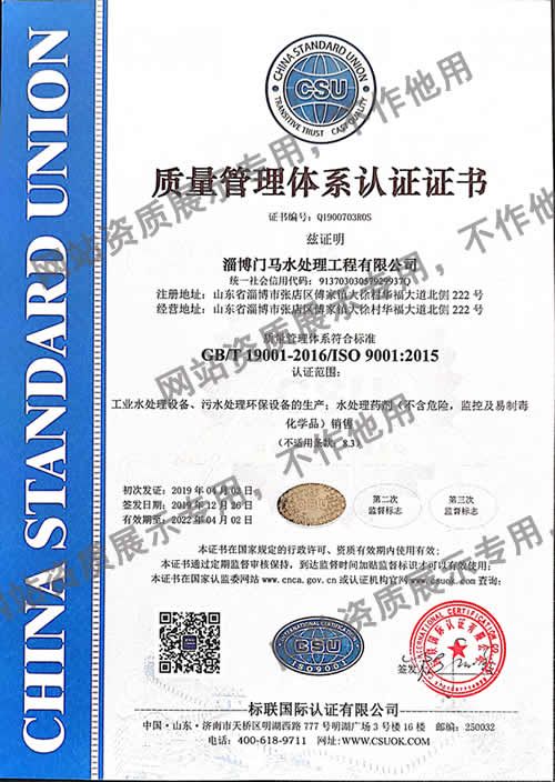 淄博門馬水處理工程有限公司是一家集水處理工程科研、設(shè)計、施工、運營、水處理設(shè)備制造為一體的高新技術(shù)企業(yè),從事反滲透純水設(shè)備、超濾凈水設(shè)備、工業(yè)用純水及超純水設(shè)備、實驗室用超純水系統(tǒng)、EDI高純水設(shè)備、離子交換設(shè)備、污水藥劑、水處理設(shè)備、污水處理設(shè)備、過濾設(shè)備、反滲透設(shè)備、水處理工程、各種水處理濾芯及配件的設(shè)計與制造的水處理設(shè)備制造商。所生產(chǎn)設(shè)備均通過ISO9001-2008質(zhì)量體系認(rèn)證以及涉水批件等相關(guān)資質(zhì)。設(shè)備銷往全國各地的同時也出口東南亞及其他地方多個國家并贏得客戶的一致好評!